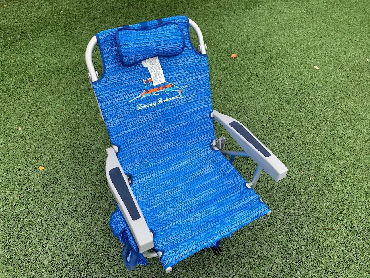 The Tommy Bahama chair is equipped with backpack straps for transport