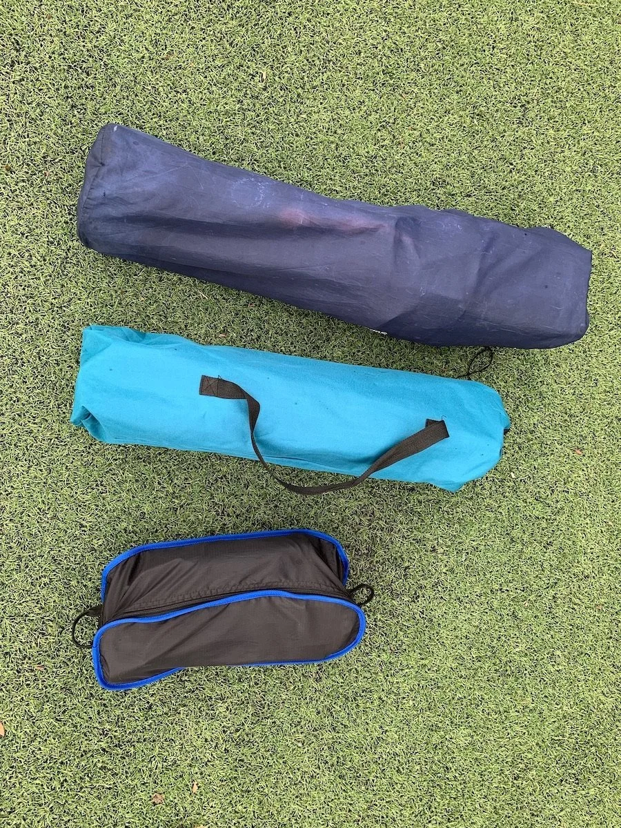 Some chairs compact into a tube with a bag and carrying strap, others fold in half