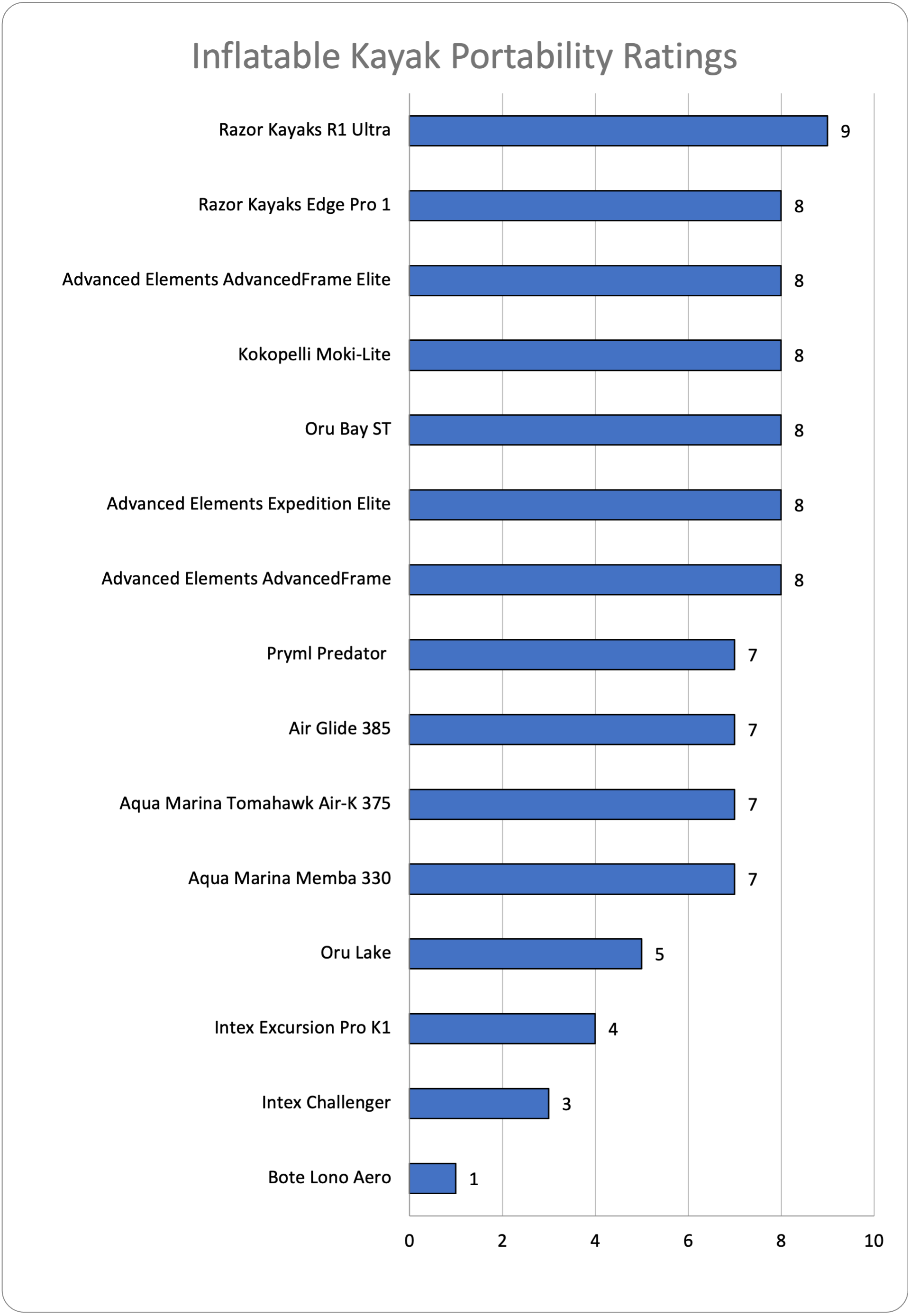 Portability - Covers around 10–15% of the score and focuses on weight, bag fit and carry ease. We also adjust this to account for material quality in order not to unfairly elevate kayaks that may be extremely portable but of poor quality.
