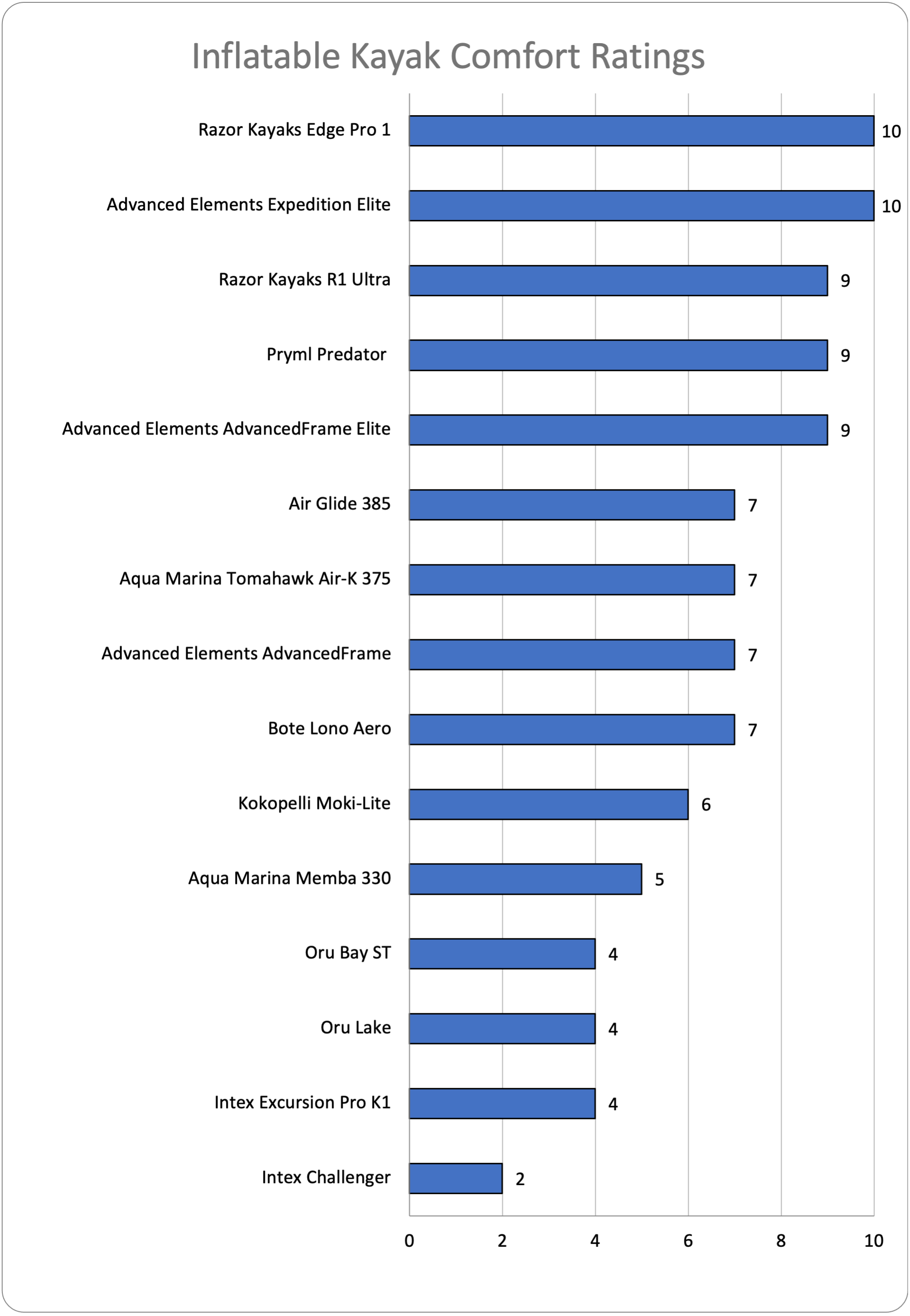 There is a lot that goes into comfort: how spacious is the cockpit, what material are you sitting on, what is the backrest like, is there enough legroom and is it easy to paddle.