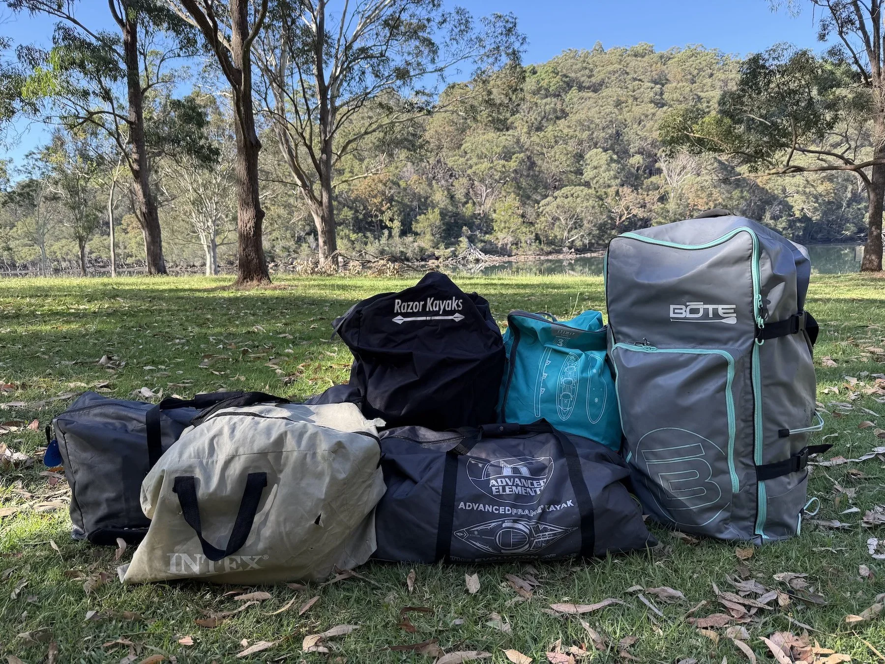 Each kayak has a different-sized carry bag, some with shoulder straps, while others can be carried like a backpack